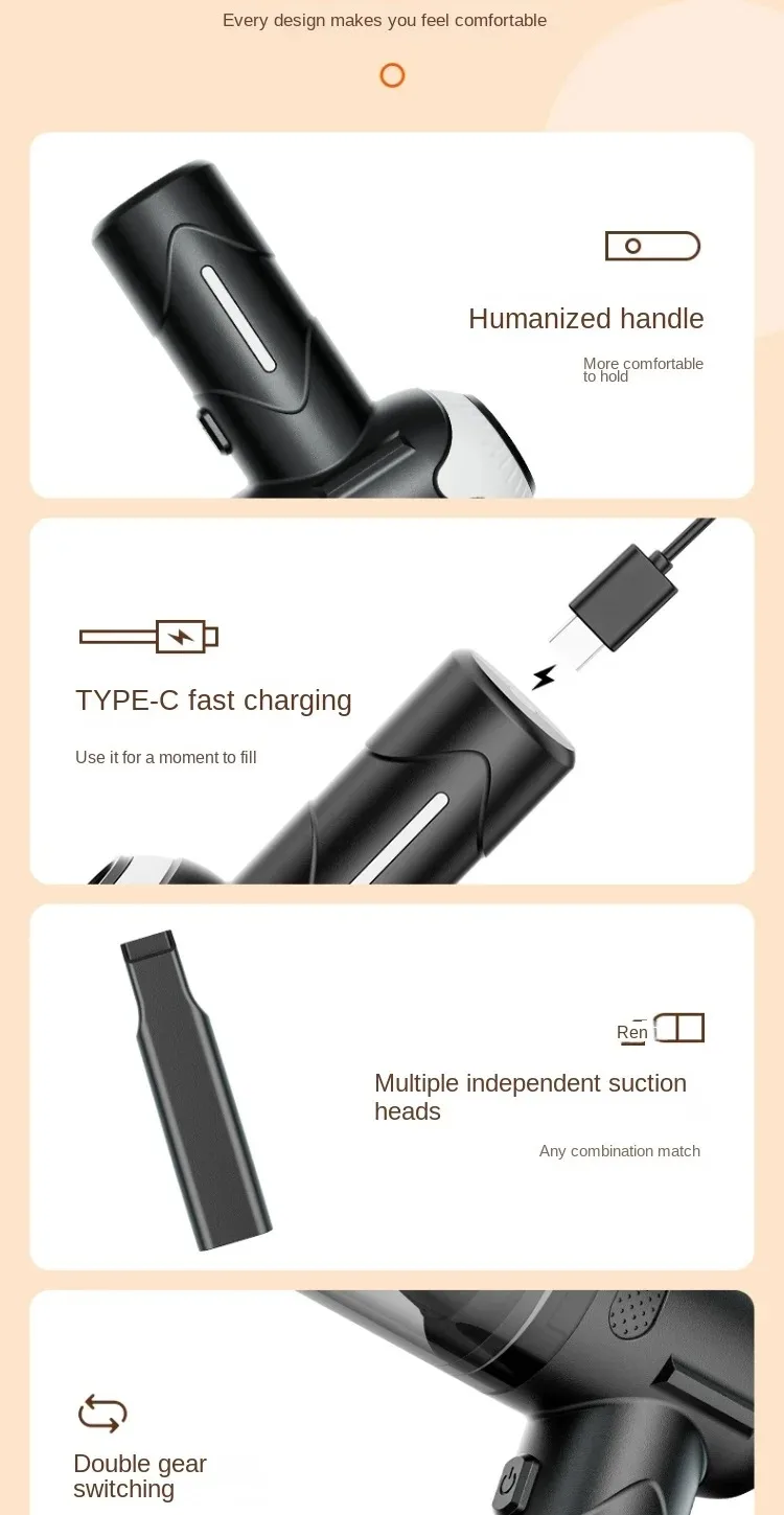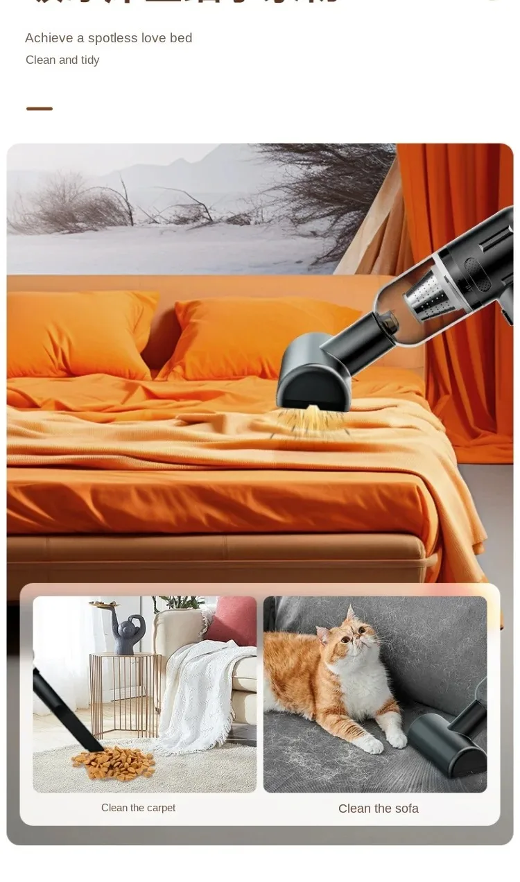 Mantenha seu carro, sua casa e o cantinho dos seus pets sempre impecáveis com o Aspirador de Pó Sem Fio 75000Pa, um equipamento compacto, potente e prático que vai transformar a sua rotina de limpeza.