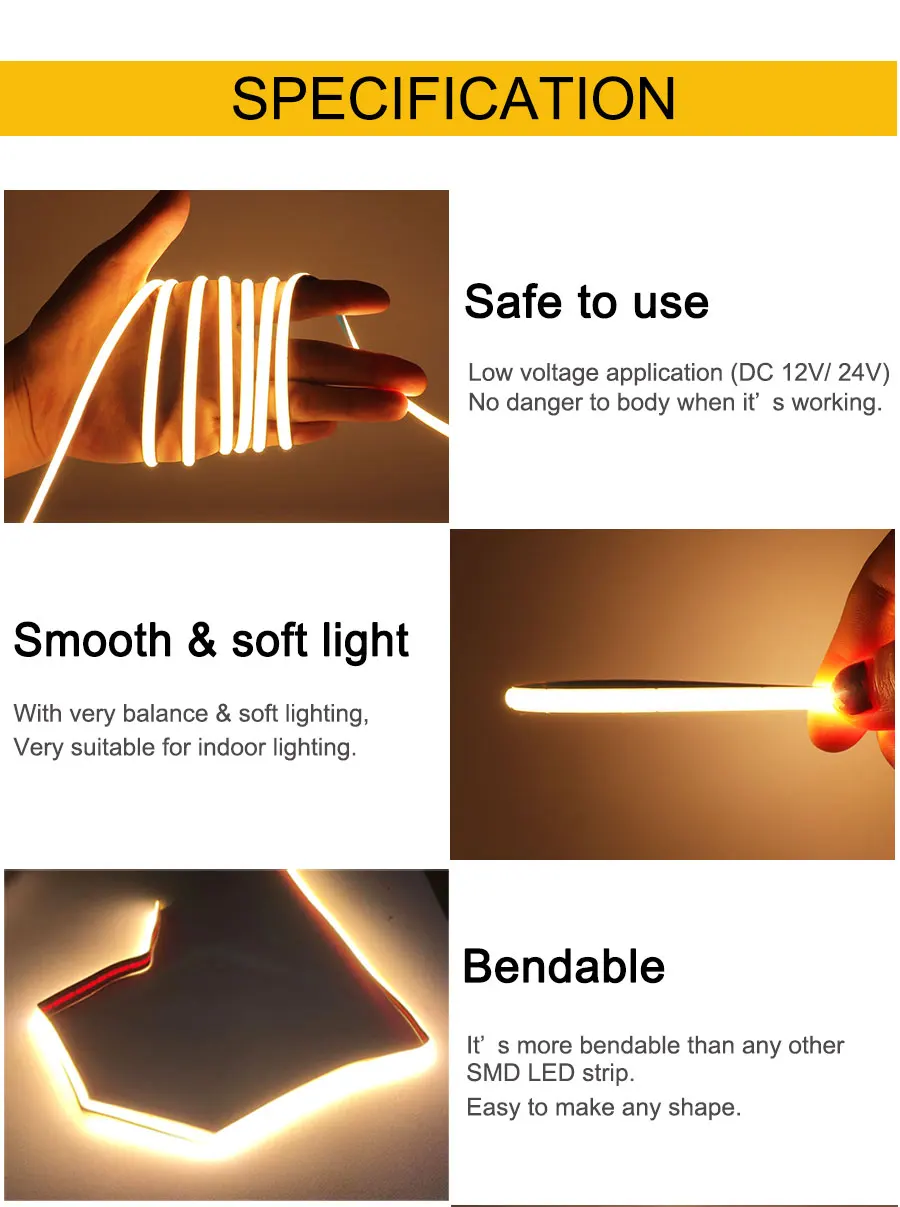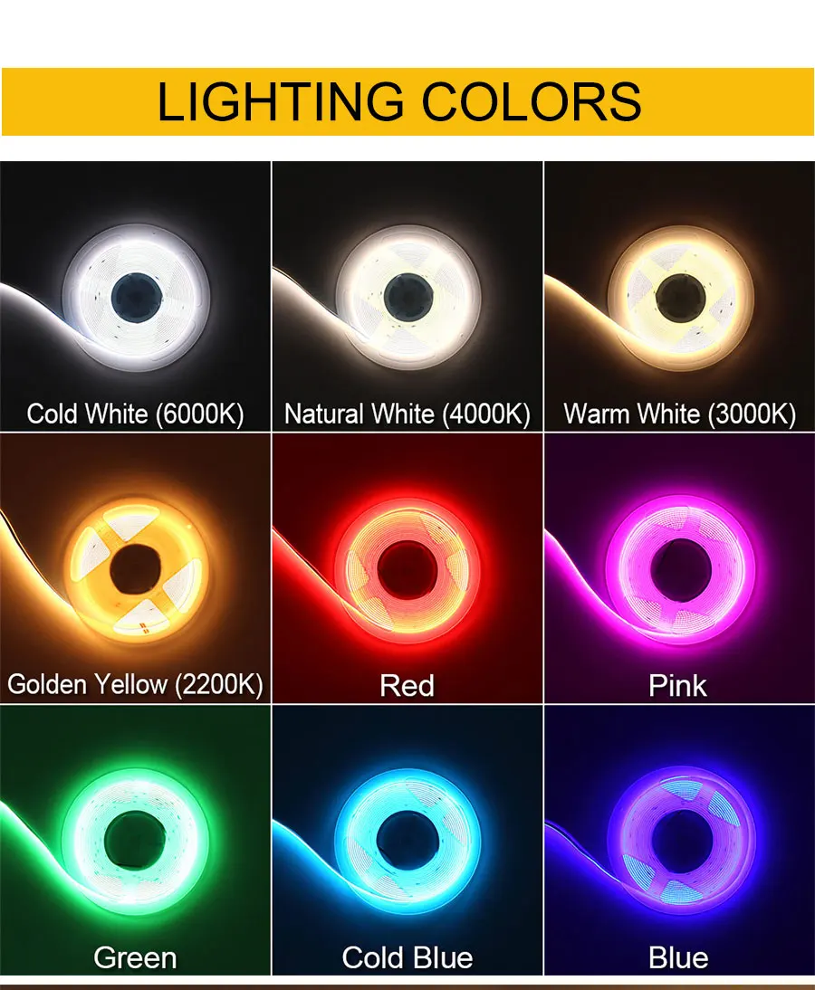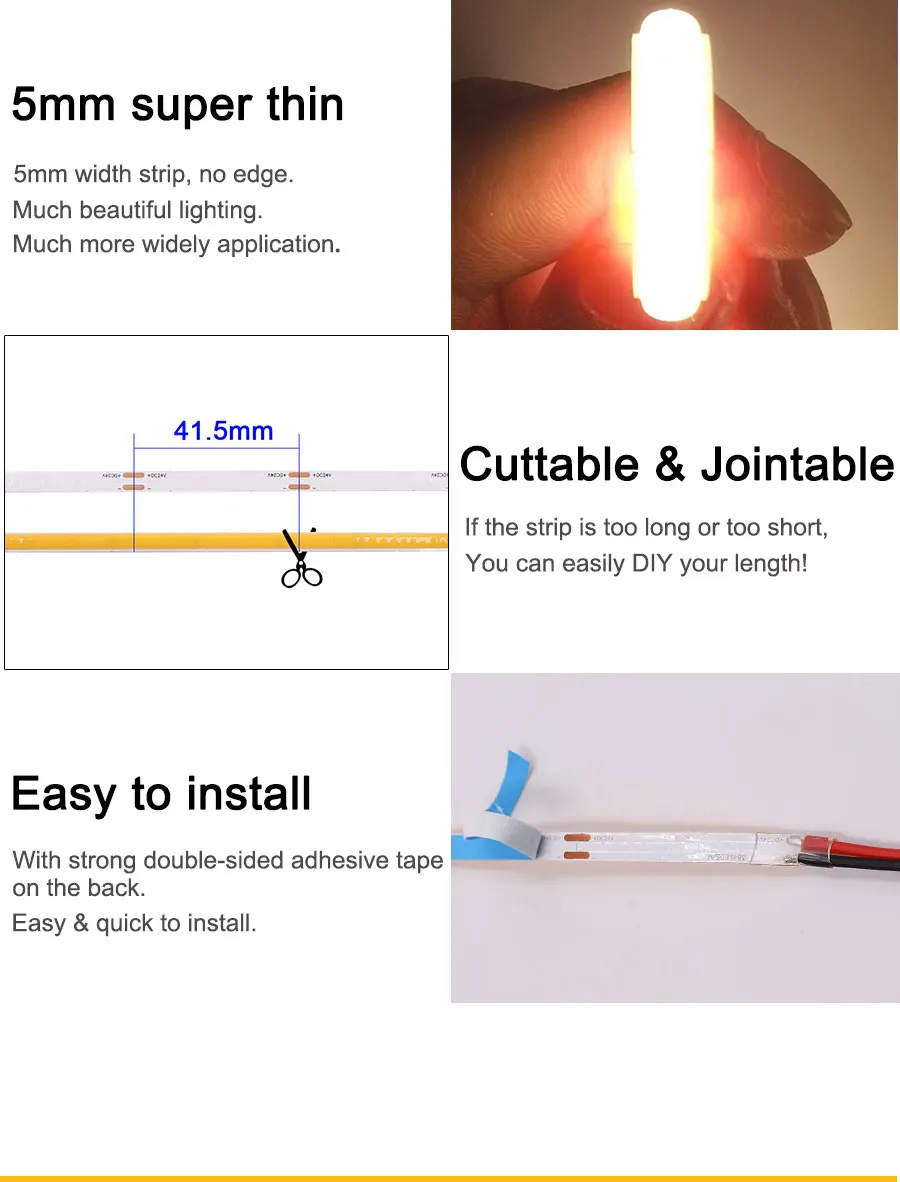 2. A tira COB é articulada por 50cm-strip, então há alguns pontos articulados (soldagem) na tira, é muito normal! Os pontos articulados não influenciarão o efeito luminoso!