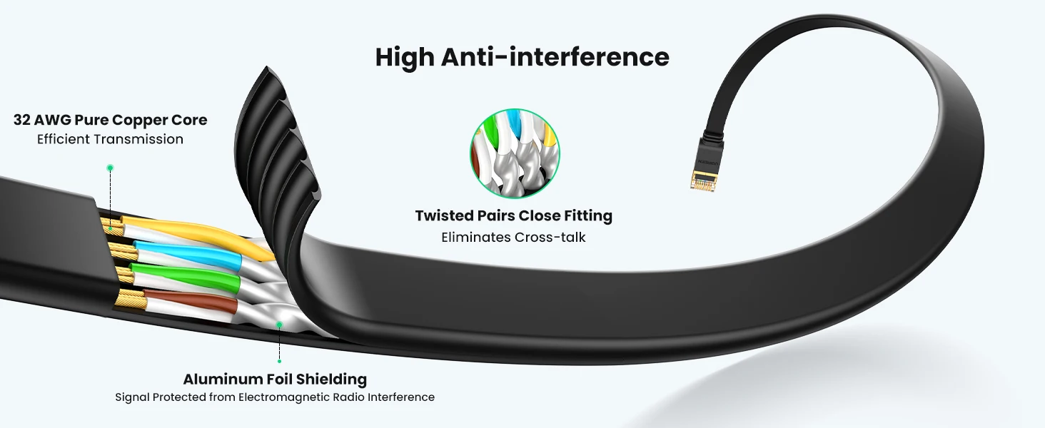 Com tecnologia de blindagem eficiente, este cabo Cat7 da UGREEN oferece proteção contra interferências e ruídos elétricos, garantindo uma transmissão de dados sem perda de qualidade. Desfrute de uma conexão estável e confiável, mesmo em ambientes com muitos dispositivos eletrônicos.