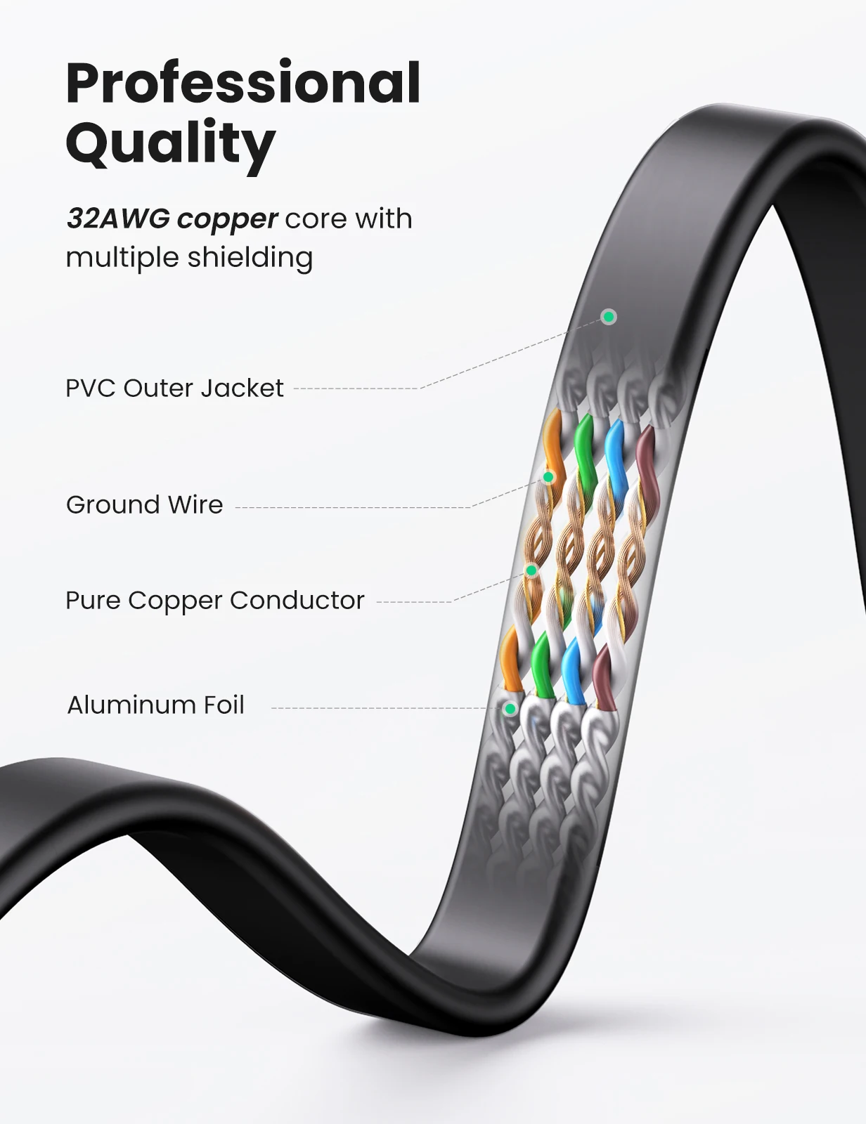 O Cabo de Rede LAN do Gato 7 da UGREEN é a escolha ideal para quem busca uma conexão de alta velocidade e confiabilidade para suas necessidades de rede. Com tecnologia avançada e construção de qualidade, este cabo Ethernet Cat7 proporciona transferência de dados rápida e estável, garantindo uma experiência de conexão sem interrupções.