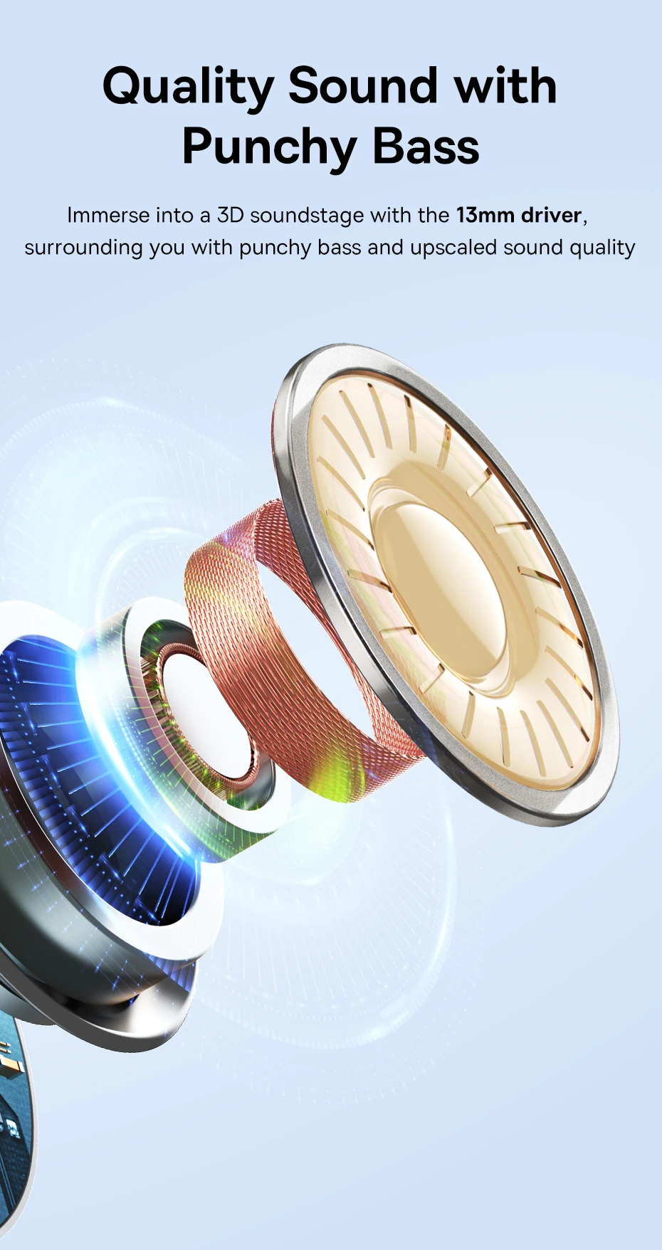 Mergulhe em um palco de som 3D com o driver de 13 mm,