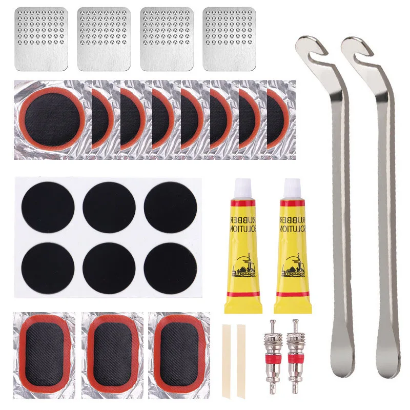 O Kit de Reparo de Pneus para Bicicleta é projetado para lidar com uma variedade de problemas comuns relacionados aos pneus, permitindo que você resolva furos, rasgos e outras questões de forma rápida e eficaz. Com 48 peças essenciais, incluindo remendos autocolantes, ferramentas de remoção, espátulas de pneus e muito mais, este kit cobre todas as bases para que você possa lidar com qualquer contratempo enquanto estiver pedaland