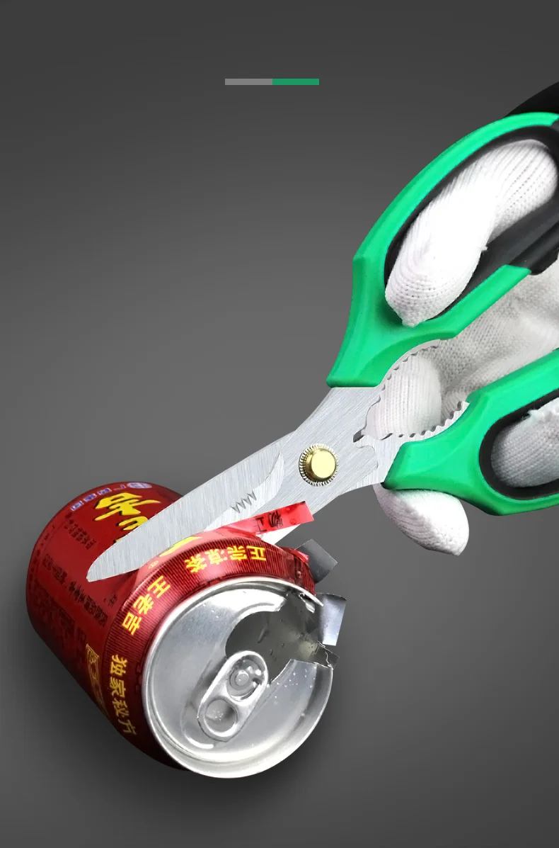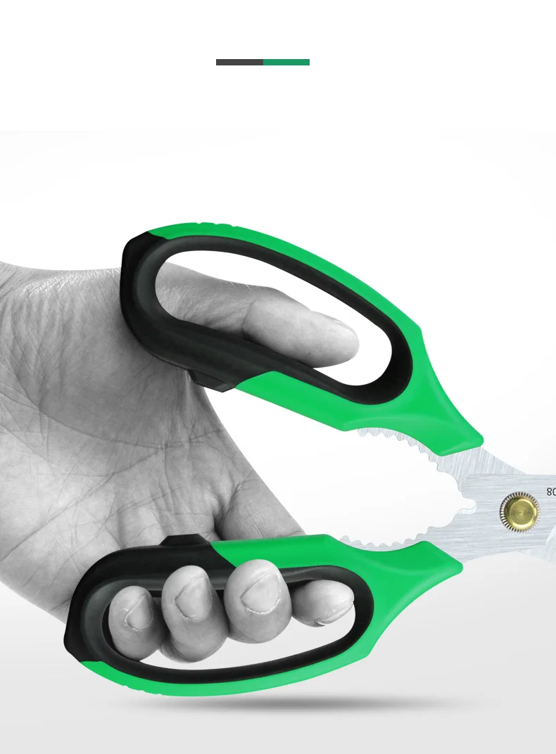 Fabricada em aço inoxidável premium, a tesoura oferece resistência superior à corrosão, desgaste e impacto, garantindo uma longa vida útil mesmo sob uso constante. Seu corte é limpo, preciso e sem rebarbas, ideal para materiais diversos – desde alimentos e embalagens até borracha, plástico, papel, tecido e até fios, graças à função de crimpagem integrada. Isso significa que a ferramenta vai muito além da cozinha: ela também se torna útil em pequenas manutenções, oficina, jardim e trabalhos manuais.