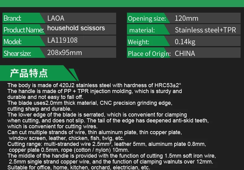 Com a Laoa Tesoura Doméstica de Aço Inoxidável Multiuso, você ganha rapidez, eficiência, segurança e conforto em cada corte. Aproveite para levar agora a sua e elevar a qualidade das suas tarefas domésticas e profissionais!