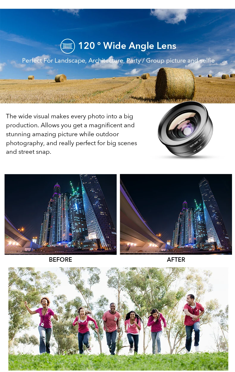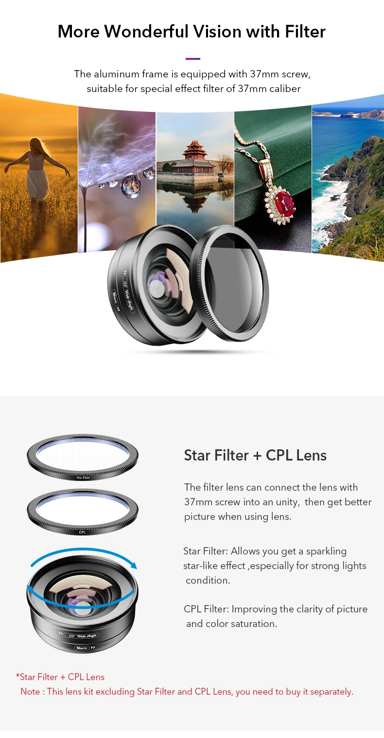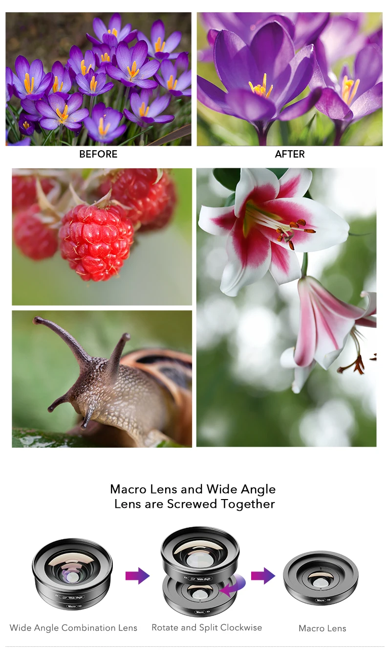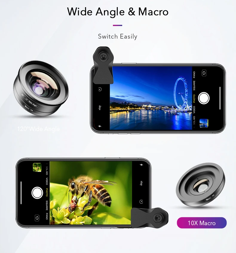 Magnification: 120 degree wide+10x macro lens kit