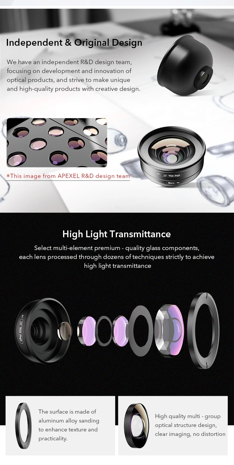 O design da lente Apexel foi pensado para ser prático e funcional. Com um clip universal, é fácil fixá-la ao seu smartphone em segundos, sem a necessidade de qualquer instalação complexa. Além disso, sua construção durável garante que você possa levá-la para onde quiser, seja em uma viagem emocionante, um evento especial ou mesmo no dia a dia. Leve sua criatividade fotográfica para todos os lugares!
