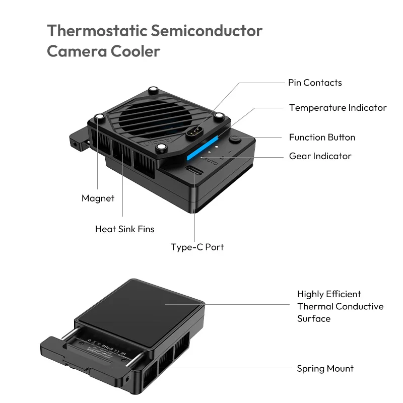 Equipped with highly efficient thermal conductive surface to protect your camera while ensuring rapid cooling.