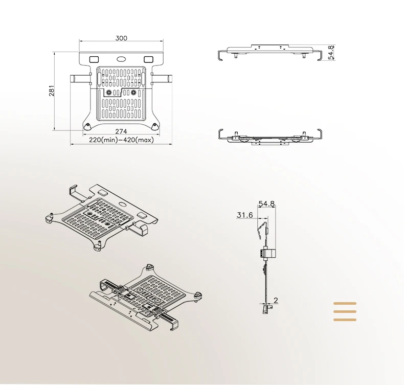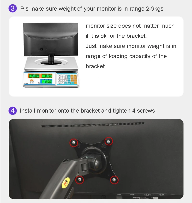 - Carga de suporte de 4,4 a 19,8 lbs (2-9 kg)X2.
