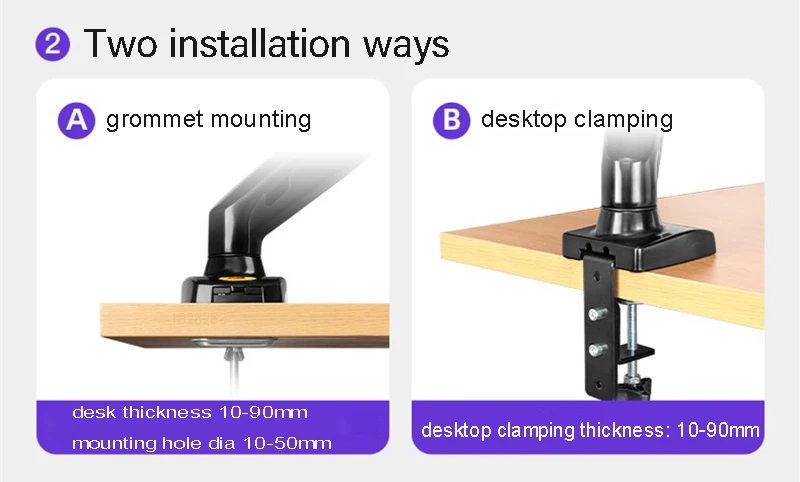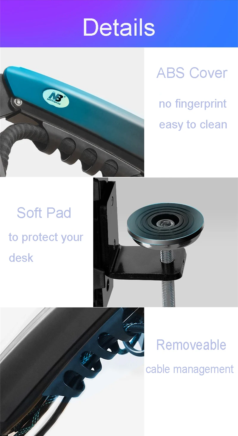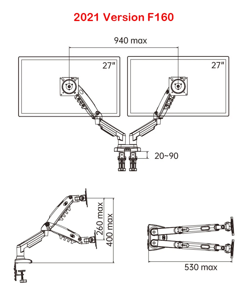 A montagem de monitor flexível de telas duplas de mesa F160N é um cilindro de vérte a gás durável integrado para permitir que suas telas sejam movidas em qualquer direção e altura conforme desejar.Permite que você experimente o melhor design de interface ecológica para obter a melhor posição de visualização.Suporte LCD de mesa com telas duplas F160N projetado especialmente para pessoas que precisam de múltiplas telas e multitarefas para aprimorar sua produtividade em trabalhos de escritório, finanças, design e TI.Adicionado aquele design da junta articulada com mola por gravidade ofereceu uma posição de inclinação sem esforço para eliminar o ângulo de visão cinza.