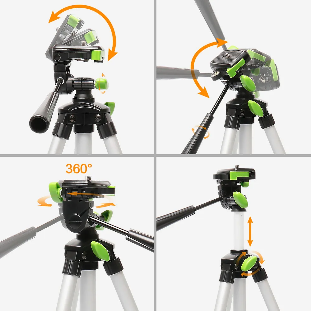 Features: 3-way swivel pan head with bubble level