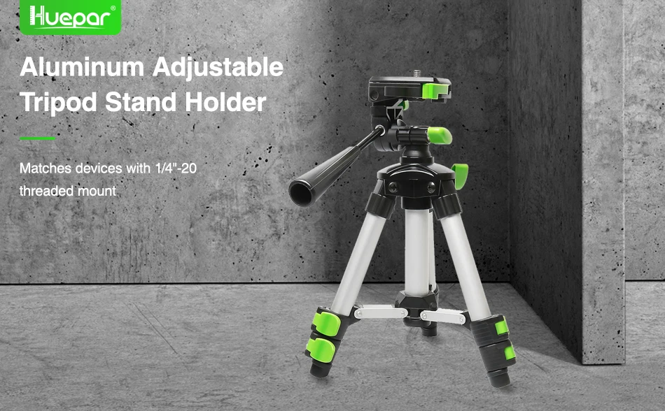 O tripé Huepar é construído com materiais de alta qualidade que garantem durabilidade e resistência mesmo em condições adversas. Com uma estrutura robusta e cor marrom elegante, este tripé não só oferece desempenho excepcional, mas também adiciona um toque de estilo profissional ao seu ambiente de trabalho.