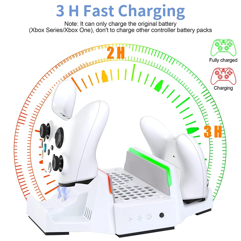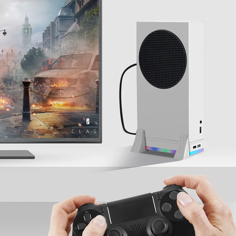 1.Refrigerador de suporte vertical: O ventilador de resfriamento especialmente projetado é adequado para o console Xbox Series S.A ventoinha de resfriamento com um par de suportes verticais manterá o melhor desempenho de dissipação de calor do host sem superaquecer e prolongará sua vida útil.