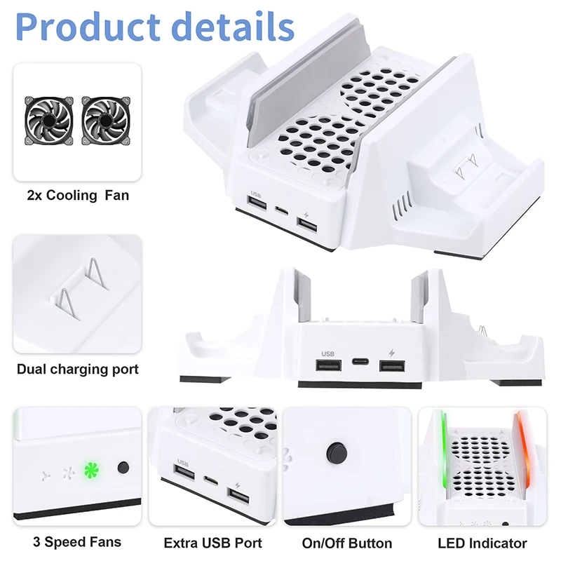 3.Ajuste de 3 marchas: Este é um ventilador de resfriamento com faixa de luz LED integrada e dois ventiladores silenciosos de alta velocidade, que podem soprar rapidamente o ar, acelerar o fluxo de ar e reduzir efetivamente a temperatura do console de jogo.A ventoinha de resfriamento tem três marchas e é um interruptor de toque.A marcha baixa é laranja, a segunda marcha é azul e a marcha alta é verde.Nenhuma luz significa parar.