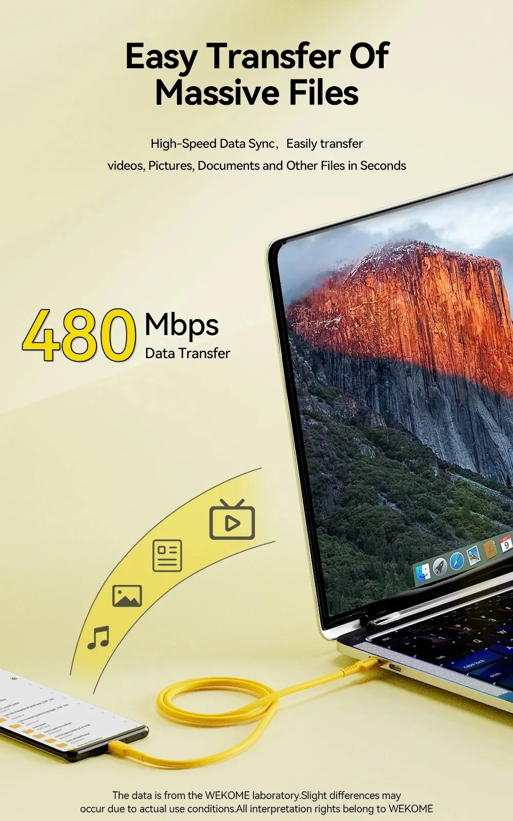 Com suporte a carregamento rápido de até 100W (dependendo do dispositivo e carregador utilizados), o cabo WEKOME oferece energia suficiente para carregar celulares, tablets e até notebooks com tecnologia Power Delivery. Isso significa muito mais eficiência, menos tempo na tomada e mais produtividade para você.